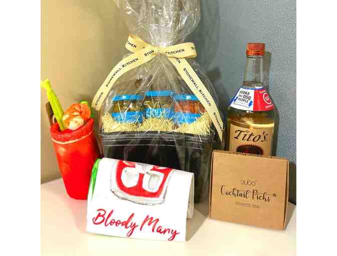 This basket has everything you need to enjoy an amazing bloody mary at home! Complete with Stonewall Kitchen mix, cocktail picks, Titos vodka, and an adorable kitchen dish towel. Also includes a Barky Mary for your favorite four-legged friend to enjoy with you!