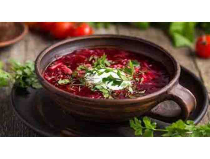 A delicous pot of Ms. Yana's traditional Borscht beet soup!