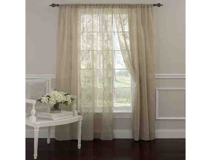 These beautiful sheer panels with a white floral design will add style and sophistication to update any room. Easy care, 100% polyester. Panels measure 52" x 63".
