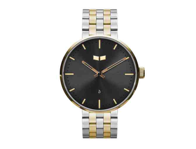 A signature Vestal Timepiece with its clean slimline case and straightforward dial. The premium 3 hand Japanese analog movement with dates rests inside a multi-layered 42mm 316L solid stainless steel case. Laser-cut indexes then reveal a multi-layer dial that creates a unique design contrast for illuminating hour markings. The 20mm wide 5-link, solid sainless steel band with butterfly clasp is integrated into the case with no lugs allowing the watch to hug your wrist and completing a clean and precise overall look and feel.