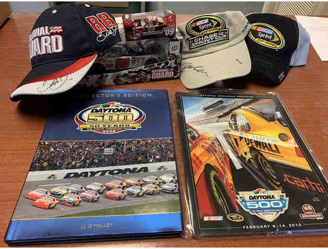 Includes autographed hats, including Dale Earnhardt, Jr.