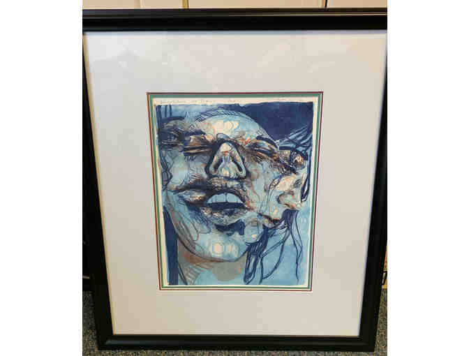 This artwork has a wonderful triple mat and black frame.