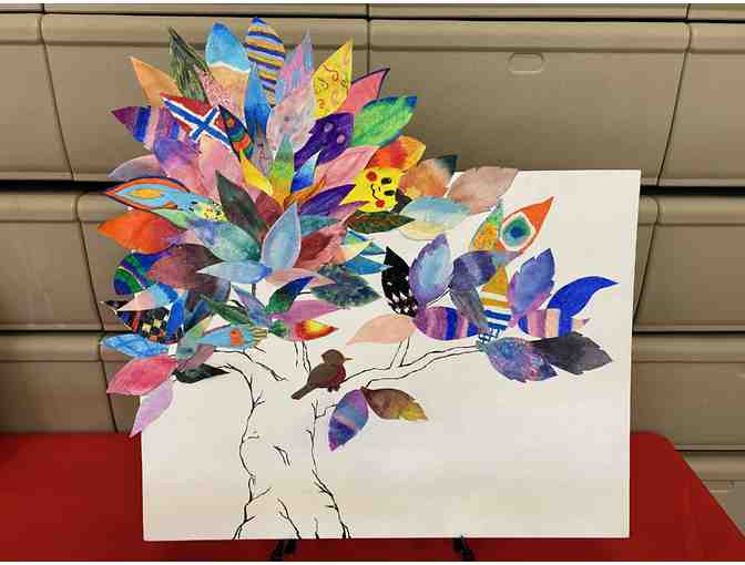 High school Art students vigorously used a multitude of media and styles to create each leaf on this tree. The colors and patterns are as exciting and unique as they are.