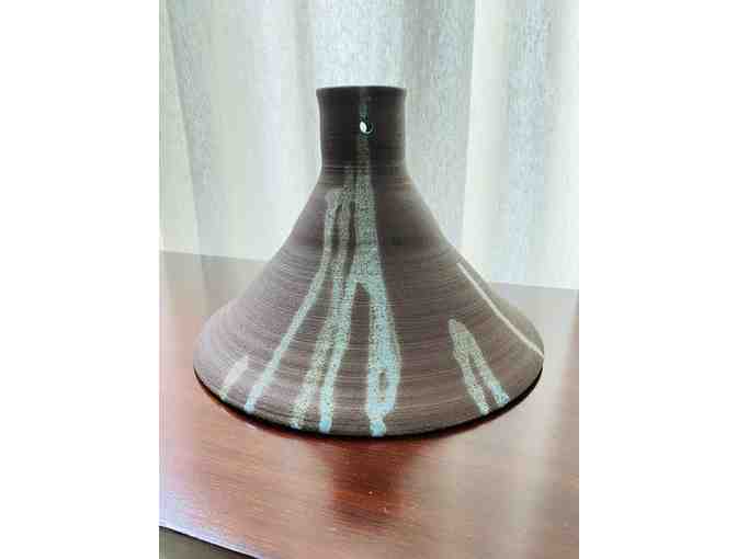 Chocolate brown ceramic lampshade with aqua glazed interior, by Nosara's own La Tómbola. Transform your basic pendant with this gorgeous design. Measures 12" in diameter and 10" in height.
