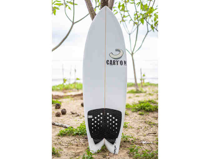 The partners at Surfing Nosara, Coldwell Banker have donated a custom Carton Twin Fin Fish Surfboard that will ride incredible in the surf of Playa Guiones, Nosara.Surfing Nosara is one if the top real estate brokerages, provides marketing and booking services for over 125+ vacation rental homes and orchatrates photography for their daily surf report photography in Nosara @surfing_nosara, www.surfingnosara.com or find them on facebook.
