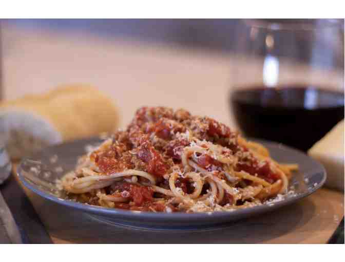 Dinner for 4-5 that includes a pot of our family's made-to-order "Spenelli Red Meat Sauce." We'll also provide a box of pasta and bottle of fabulous Red Wine!
