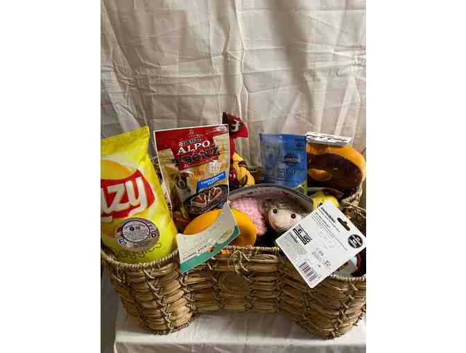 This basket is a dog lovers dream come true! Filled with so many fun dog goodies and the basket itself is shaped like a treat! Woof!
