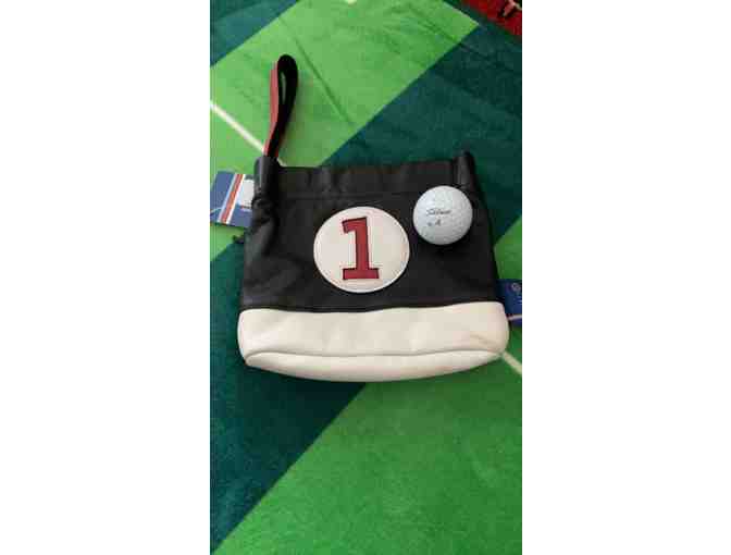LEATHER VALUABLES GOLF POUCH FROM STITCH CO. TO THE FOUR HIGHEST BIDDERS