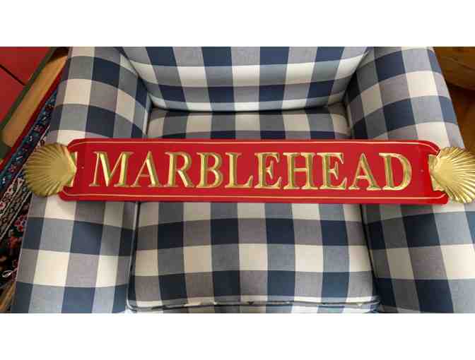 RED MARBLEHEAD QUARTERBOARD. 3 FEET LONG, WITH SHELLS ON ENDS. MADE LOCALLY!