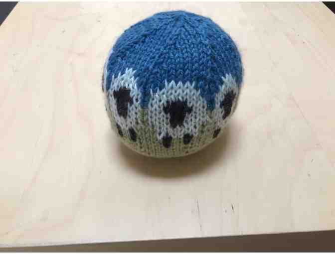 Child's knitted yarn ball with plant dyed yarn from SWSF farm!