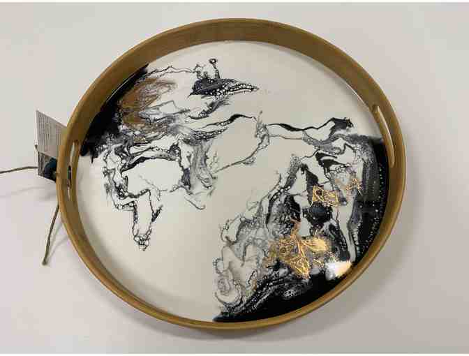Bamboo Wood Serving Try with Resin art in White, Black and Gold.