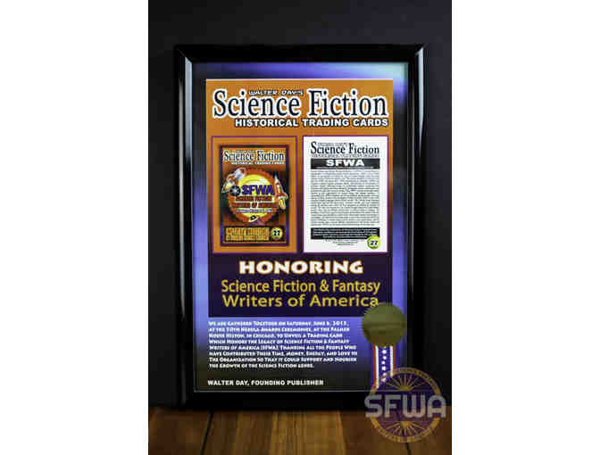 One of a kind framed print of the SFWA trading card from The Walter Day Collection, which commemorates the history and culture of the science fiction genre as found in art, film, and literature. Presented at the 50th annual Nebula Awards on June 6, 2015.