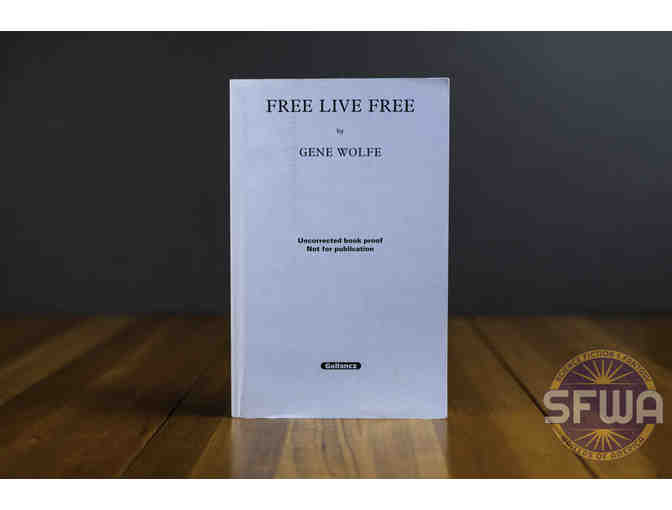 Uncorrected proof (ARC) of Free Live Free by Gene Wolfe. Autographed to "Frank" on 3/22/86.
