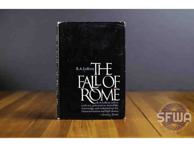 Copy of The Fall of Rome by R. A. Lafferty. Includes book plate with Gene Wolfe's autograph.