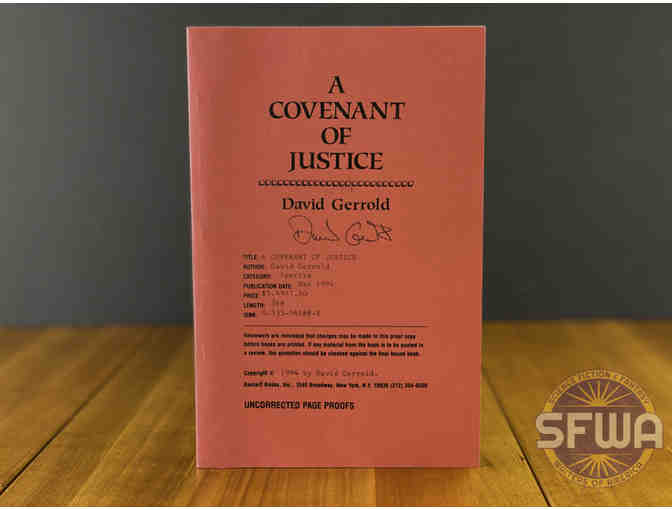A signed ARC of A Covenant of Justice by David Gerrold.