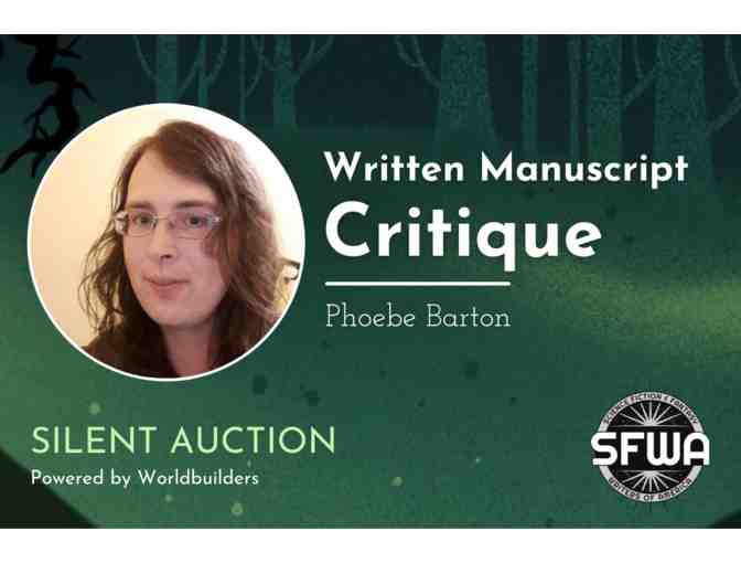The winning bidder on this item gets a written critique providing feedback on a story or an excerpt of a longer work up to 3,000 words. A terrific opportunity to receive personal feedback from science fiction and non-fiction author Phoebe Barton, who has published stories in Analog Science Fiction and Fact, On Spec, Lightspeed, and multiple anthologies and whose The Luminous Underground from Choice of Games is a finalist for this year's Nebula Award for Best Game Writing.