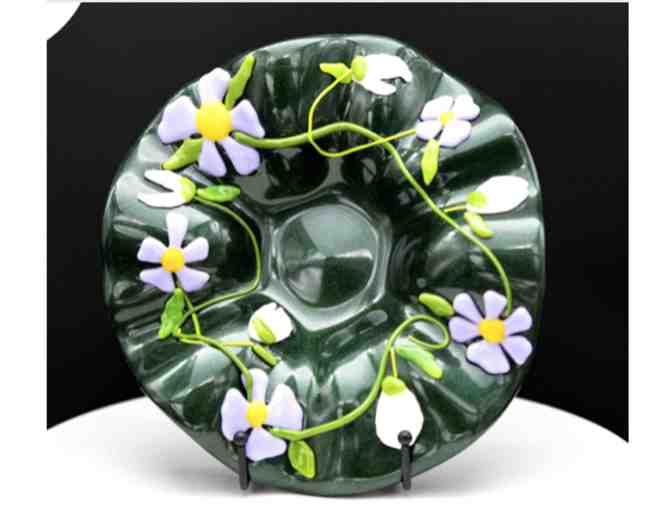 Vintage aventurine green bowl with spring flowers. Perfect size for holding candy treats, elegant candle, or keys/jewelry. Beautifully molded fused glass plate.