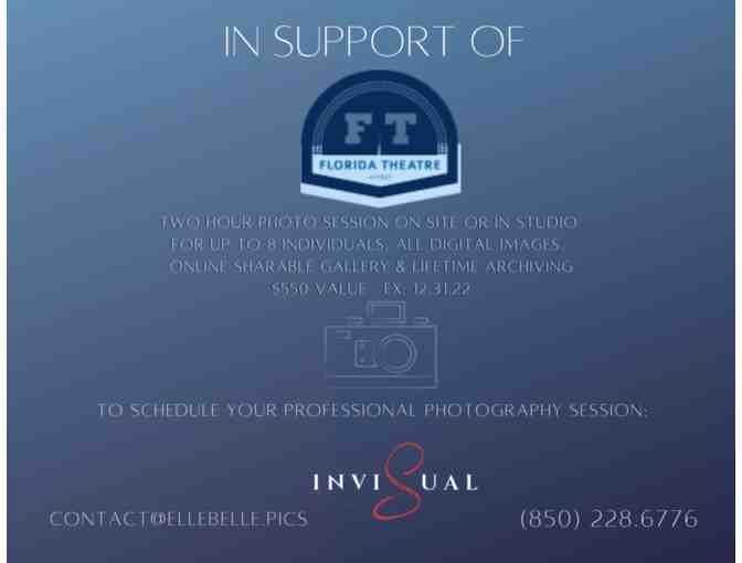 Two hours of creation time with a certified, published photographer for up to 8 individuals on site as chosen by recipient or in studio. Included are all the digital images from session in a personal online sharable gallery available for download and lifetime archiving.