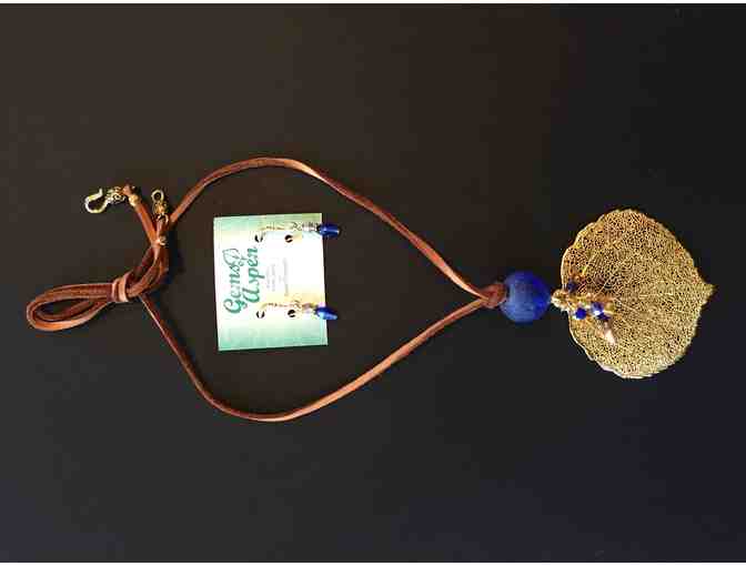 Aspen leaf -24 kt gold aspen leaf with African recycled glass bead