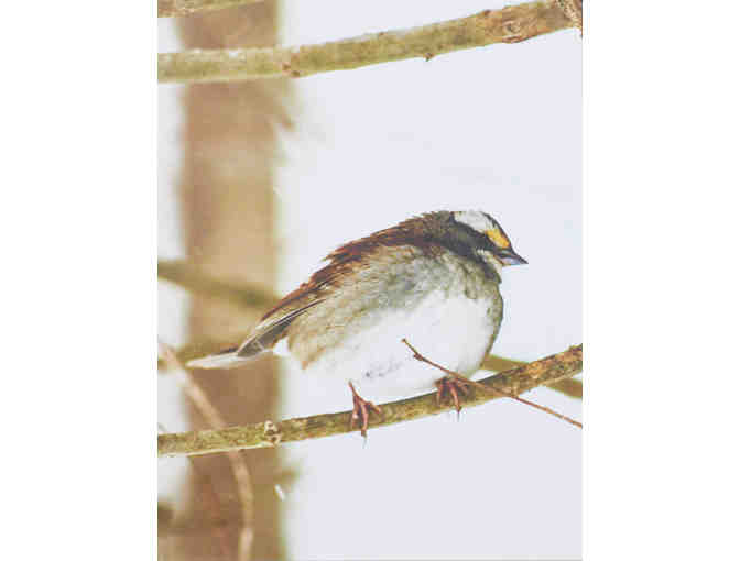 Since receiving a bird feeder as a gift during the pandemic, I have become interested in various birds passing through my backyard and attempt to photograph each one. This White-Throated Sparrow photo has been printed on card stock to give it a rough, almost painterly effect.