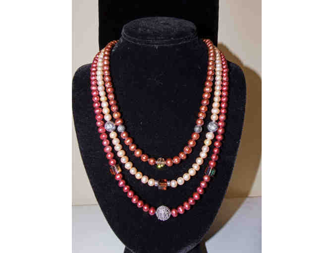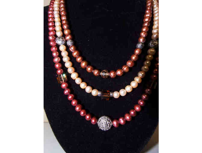 Handmade Three Stranded Freshwater Pearls and Sterling Silver Beaded Necklace