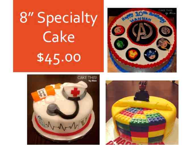 Order a specially designed 8 inch, 3 layer, round cake for your event. Work with Alissa for the design idea to make your cake have a unique look.