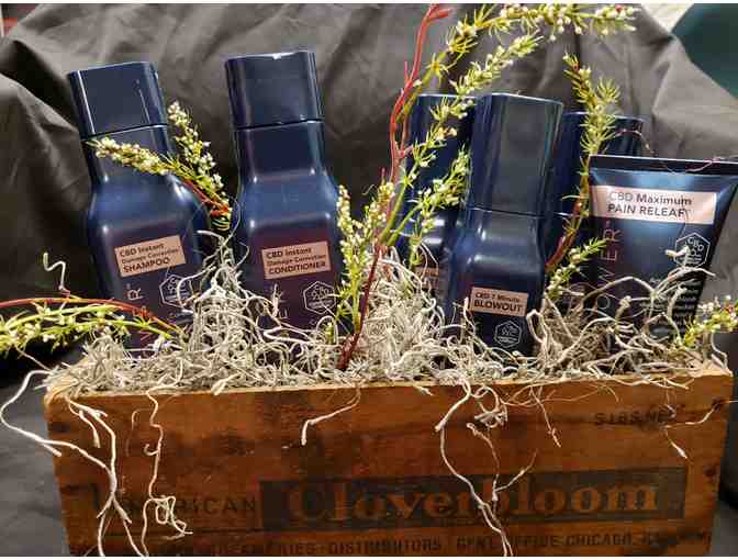 CBD products are all the rage! And now they are available for your hair. This package includes: Flower CBD Instant Shampoo, Conditioner, Frizz Remedy, 7 Minute Blow Out, Phyto Molecular Oil and Pain Relief Cream. Bid today!