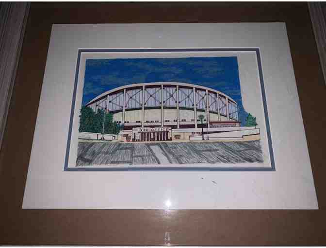 Bid now on this original drawing from Suns Legend Dick Van Arsdale. This beautifully framed, color drawing from 2015 shows a front view of the Madhouse on McDowell where the Suns played from 1968 to 1992.