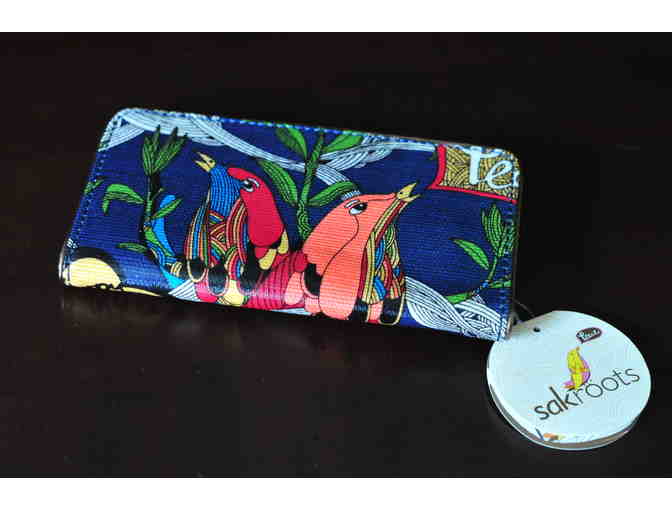 Blue and Coral Bird 'Peace' Artist Circle Wallet by Sakroots