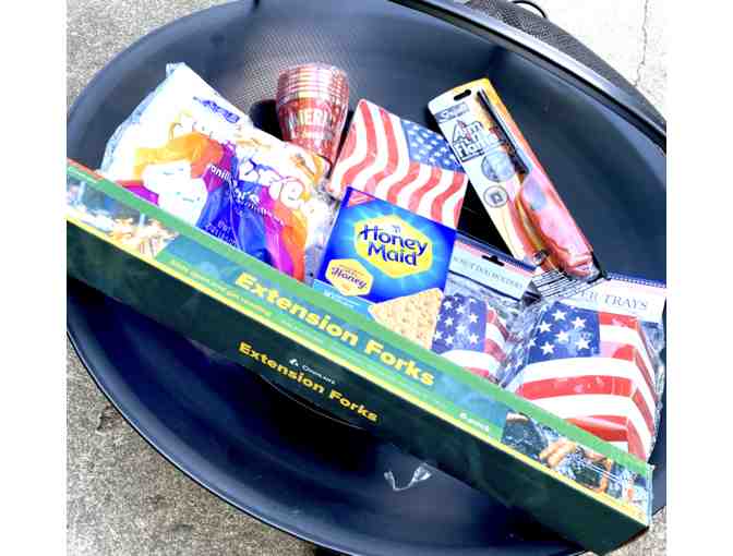 30" firepit with Bronze finish. S'mores fixings included: (4) retractable roasting forks, chocolate bars, marshmallows & graham crackers.