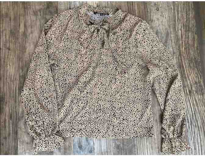 Tan, Mini Leopard Blouse - 100% Polyester, Size Small