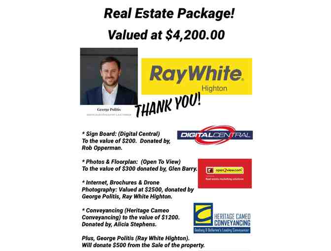 * Internet, Brochures & Drone Photography: Valued at $2500, donated by George Politis- Ray White Highton.