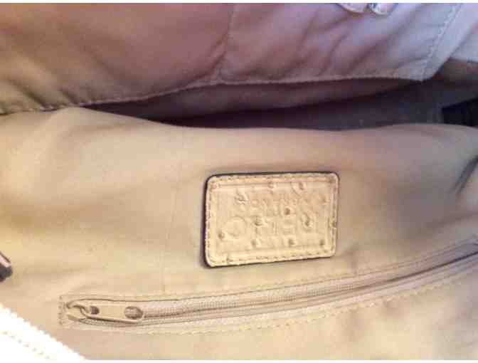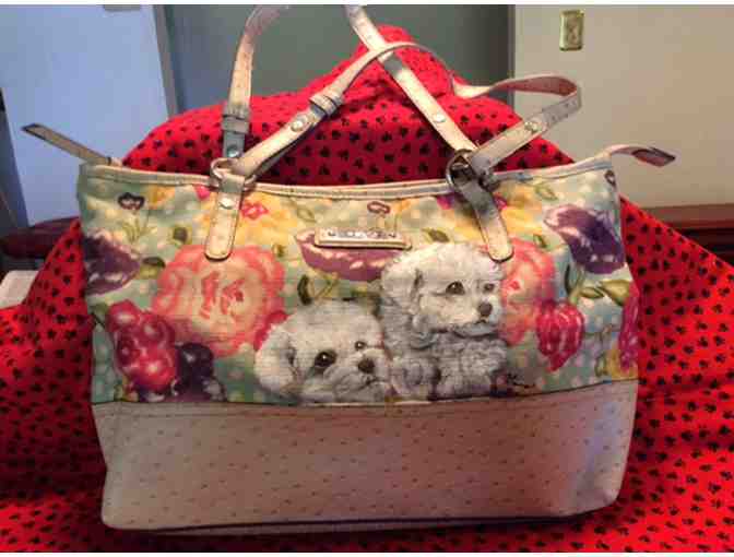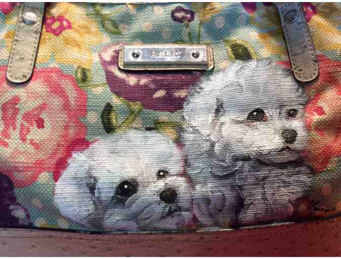 This RELIC purse has been gently used. The hand painting is perfect. The top half is a canvas material. Bottom half imprinted high end vinyl including trim, straps & bottom. The inside is fully lined in a linen material with two open pockets & one zippered pocket. It has no tears or blemishes. It has 10” drop double handles. It measures 13 wide, 10 high & 4 1/2 deep. Comes from a non smoking home.