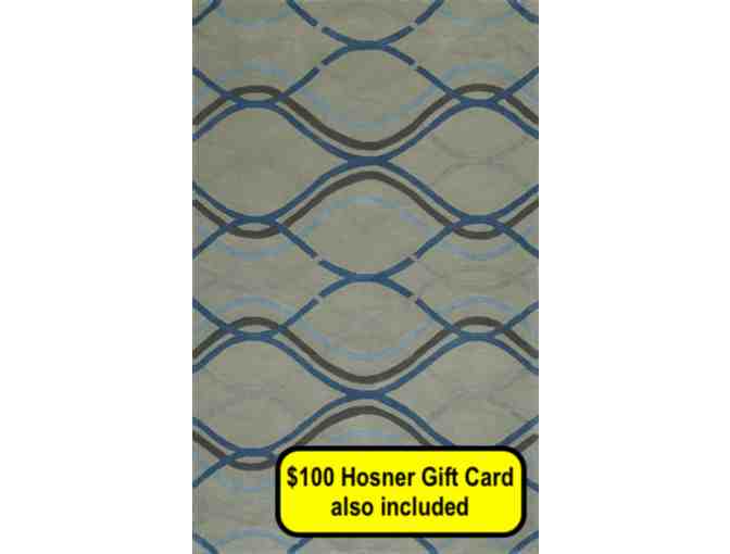 Spruce up your home with this stylish 5 x 8 blue and gray rug. This package also includes a $100 Hosner Carpet gift card towards your next flooring project.