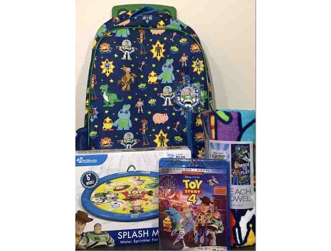 Carry all your toys and books in this Toy Story 4 rolling backpack. This package also includes: the Toy Story 4 Blue Ray and a Toy Story Splash Pad!
