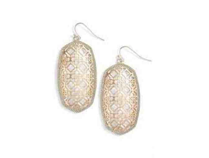 Complete your look with this sophisticated and bold Rose Gold necklace and earrings from beloved designer Kendra Scott.