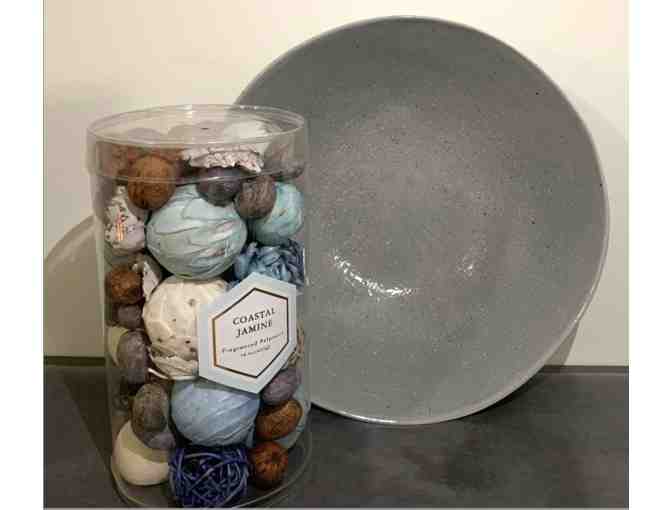 Brighten up your table with this unique gray ceramic bowl and fragrant decorative organic filler.