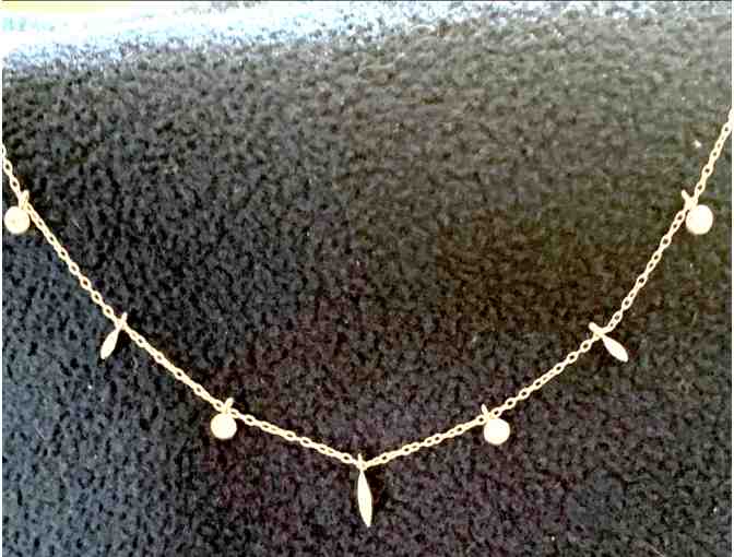 The silver necklace; has delicate silver necklace with diamond droplets.