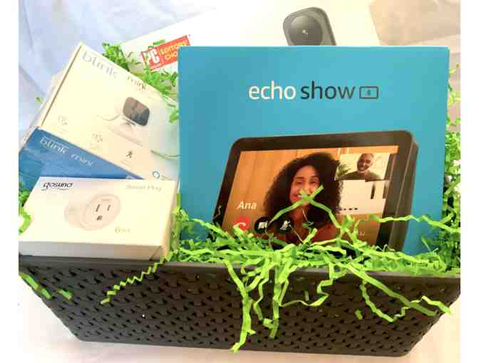 Make your home safer with Smart technology. Included are: Blink indoor mini compact Smart security camera, Remo and Remobell WiFi video doorbell, Smart plug outlets, and ECHO show B HD Smart display.