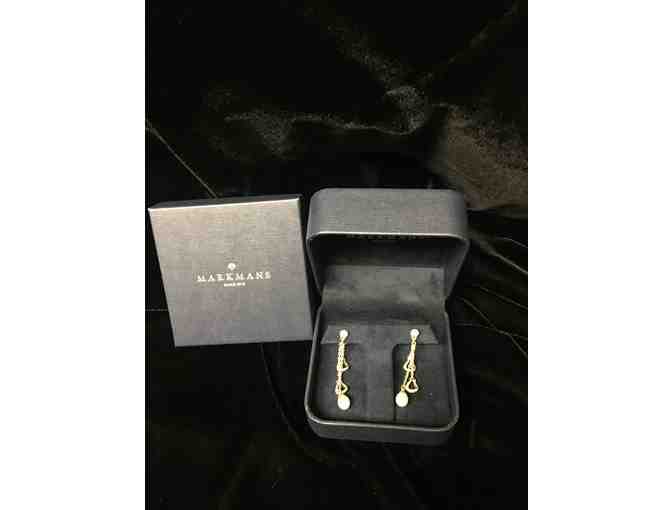 Earrings designed by Scott Kay as part of the Equestrian collection. Sterling silver with oval pearls and natural white sapphires.