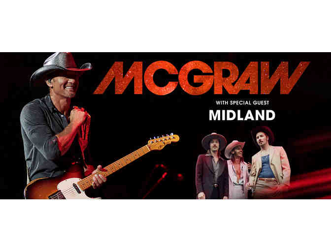 Two tickets for the Tim McGraw concert at the Minnesota State Fair on September 1, 2021, at 7:30 p.m. Also appearing with McGraw will be Midland. Tickets are reserved seats in row 47, seats 10 and 11.