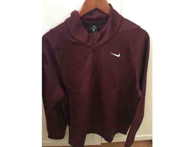 Nike Therma fabrics help manage your body's natural heat to keep you warm - and performance high when temperatures are low. Johnson Governors Golf Logo on the sleeve.