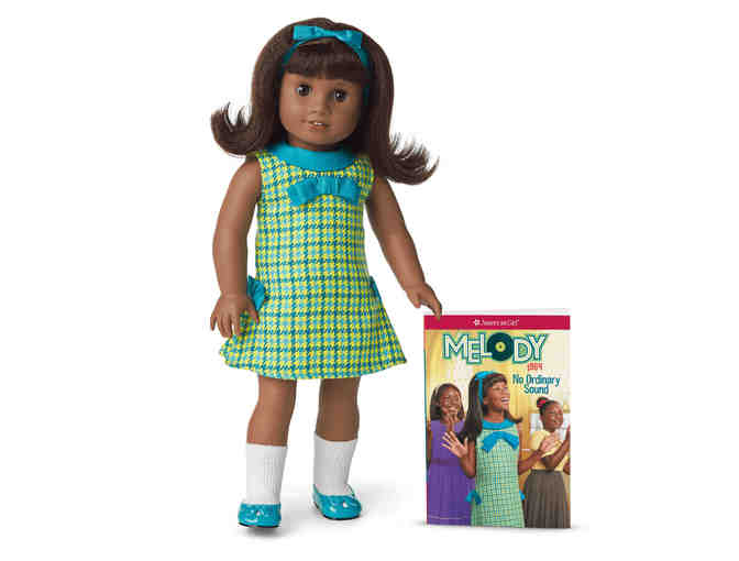 The 18" Melody™ doll has a soft cotton body, and her movable head and limbs are made of smooth vinyl. Includes the paperback book No Ordinary Sound, the first book of Melody’s stories, abridged and richly illustrated in full color.