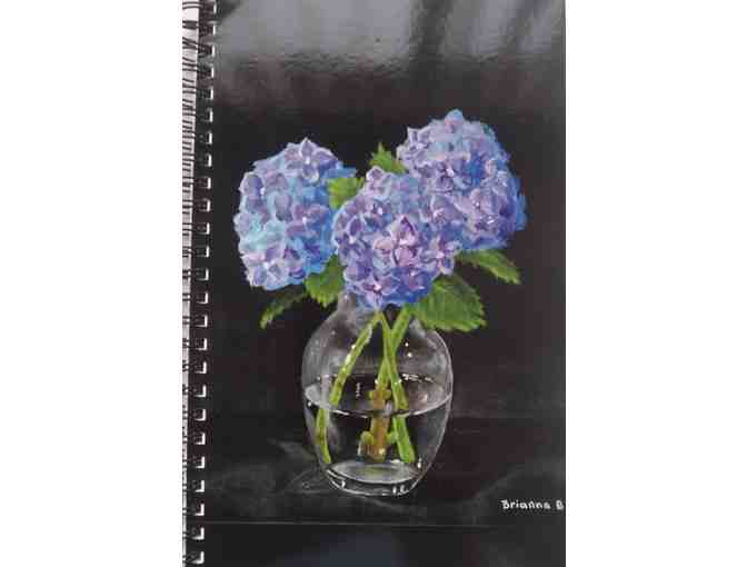 Spiral Bound notebook measures 5.5 x 8.5 inches. Contains 75 blank pages. Cover is a digital copy of an original watercolor painting by artist Brianna Battermann.