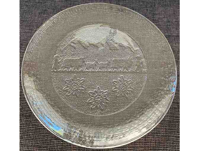 Pure Swissness Glasi Hergiswil plate with the homeland motif "Alpabzug". Dimension: Ø 280 mm Manufacturing technique: Ironed by hand on the graphite plate.