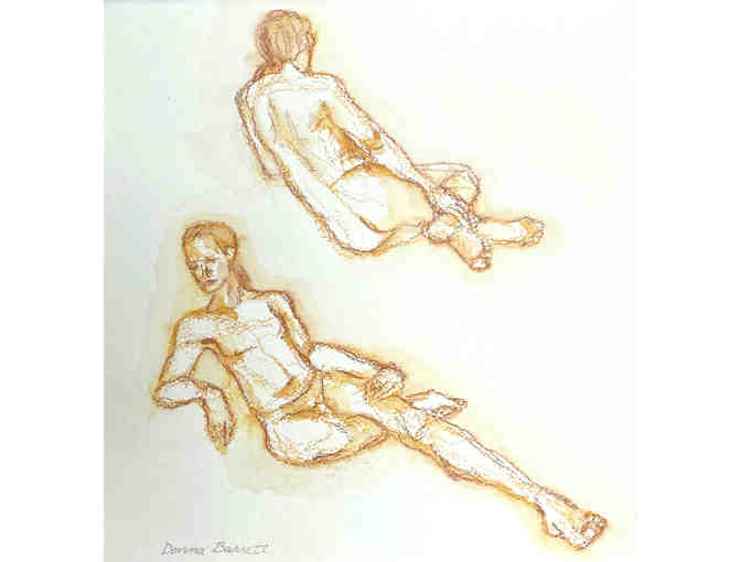 Donna Barrett is a Hudson Valley artist. This drawing was made from an Art Omi online figure drawing session during 2020 quarantine. Barrett’s work is in corporate and private collections; the Everhart Museum collection in Scranton, PA; and the Absolut collection of the Spritmuseum in Stockholm, Sweden. She has exhibited in group shows for Columbia County of the Arts in Hudson; Spencertown Academy in Spencertown; and Greene County Council on the Arts, M Gallery, and Brik Gallery in Catskill. She has also exhibited in group shows at the Children’s Museum of Science and Technology in Troy, the University at Albany Art Museum in Albany, the Art Students League of New York in NYC, and The Walter and Leonore Annenberg Conference Center for Medical Education in Wynnewood, PA. Donna Barrett has a Professional Certificate in Arts Administration from New York University School of Continuing and Professional Studies, an MA in Painting from the University at Albany, a BFA in Art History and a BS in Nursing from the University of Texas, Austin. She studied visual art at the Art Students League of New York with Robert Beverly Hale, Rudolf Baranik, John Groth, and Hananiah Harari.