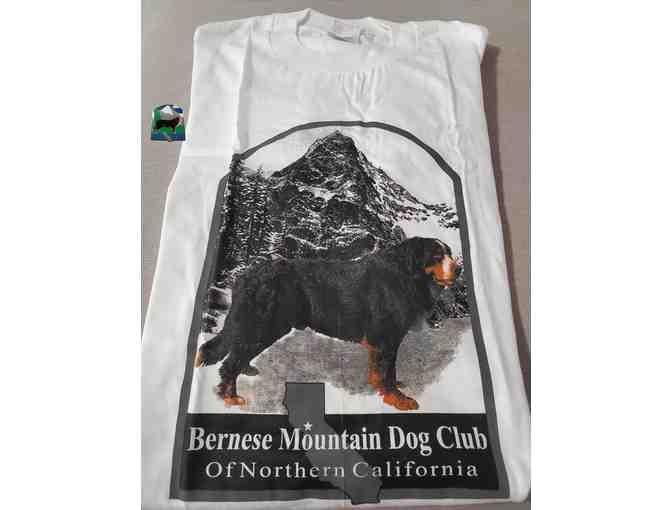 Bernese Mountain Dog Club of Northern California short sleeve t-shirt and lapel pin.
