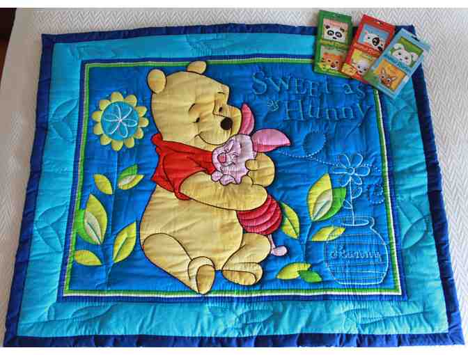 This adorable Winnie the Pooh handmade quilt measures 45" x 36". Six mini books are included for story time!