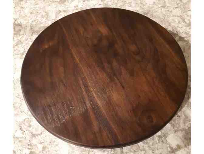 This "Tabletop Lazy Susan" was made by Cecil. It measures 12.5" round and is made of walnut.