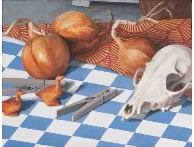 #96 Still life with onions, skull, clothespins